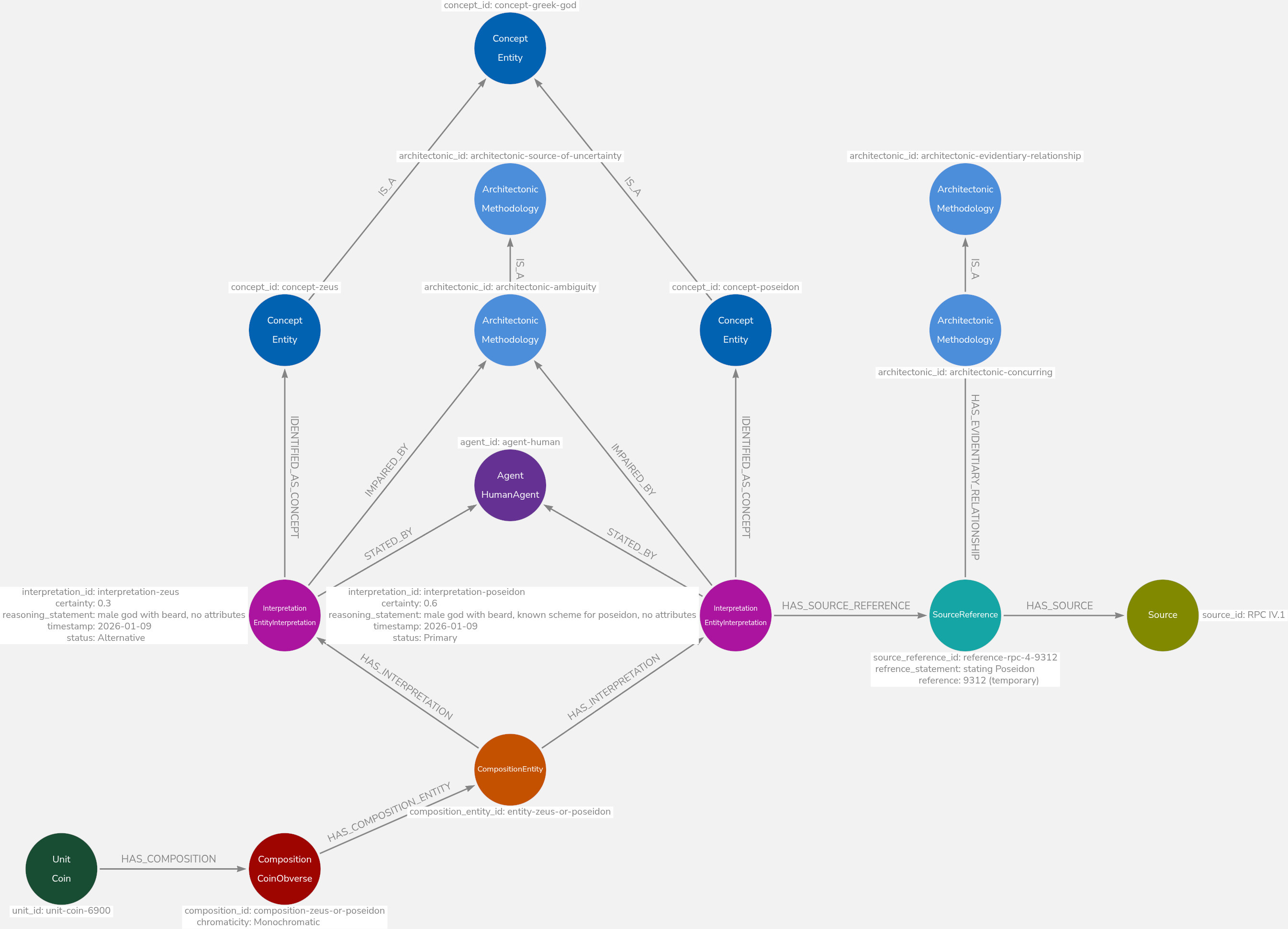 Our approach in the IDEA Graph Framework utilizes the maturity of modern Property Graphs to merge the integrity of relational systems (by using the Graph as a read-only projection of a relational SSoT) with the query performance of graphs. One central pillar of this model is the reification of the act of interpretation.